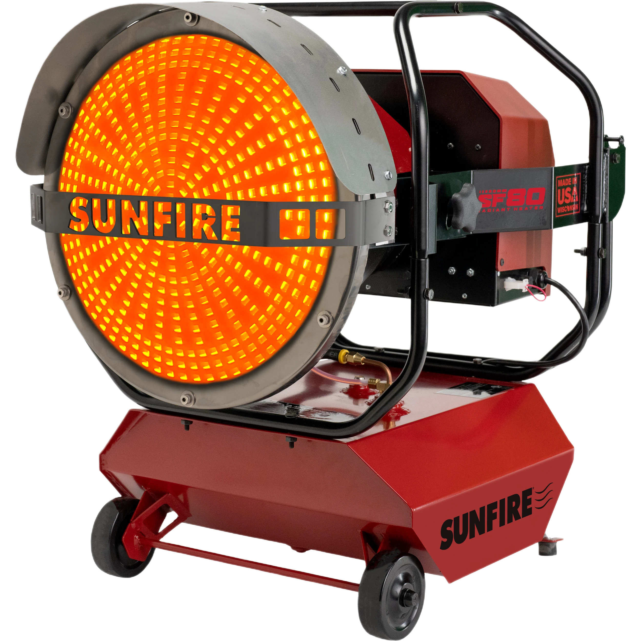 The SF80 is engineered for demanding environments where compact size, mobility, and dependable heat output matter. This portable unit delivers 80,000 BTUs of powerful radiant warmth and is ideal for smaller shops, garages, mobile work stations, agricultural spaces, detail bays, and enclosed outdoor work areas. It warms objects and people directly, eliminating the noisy airflow, odor, and dust movement associated with traditional forced-air heaters.
